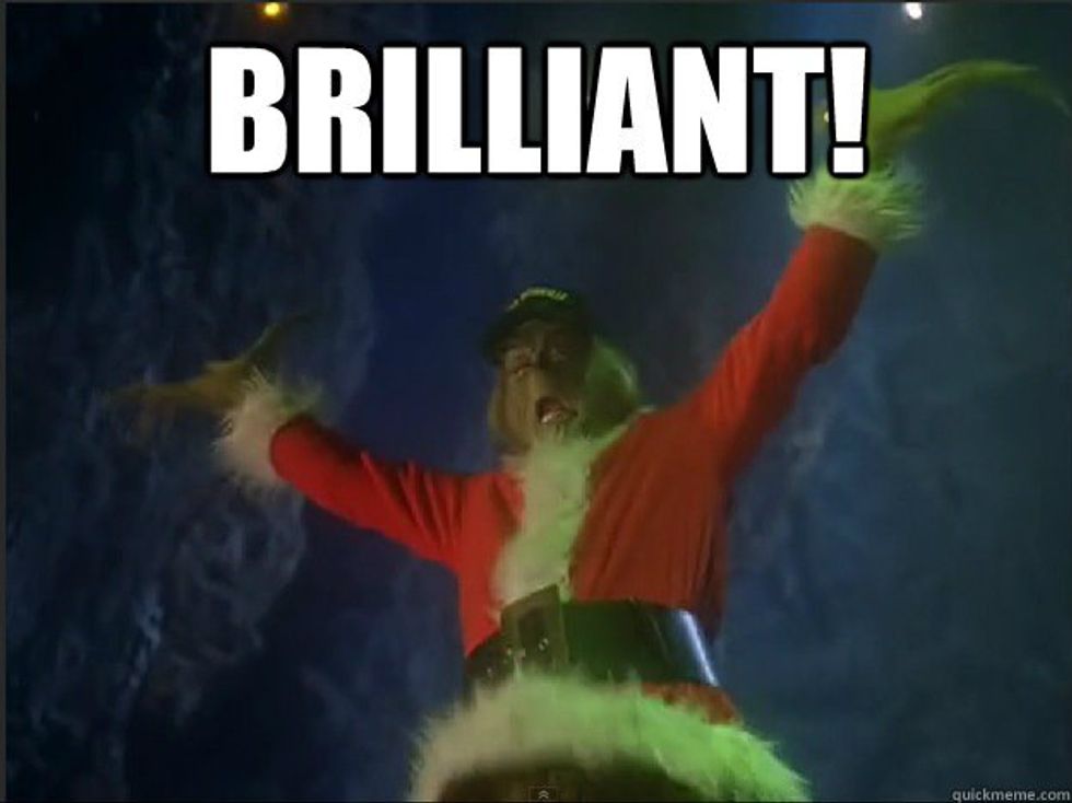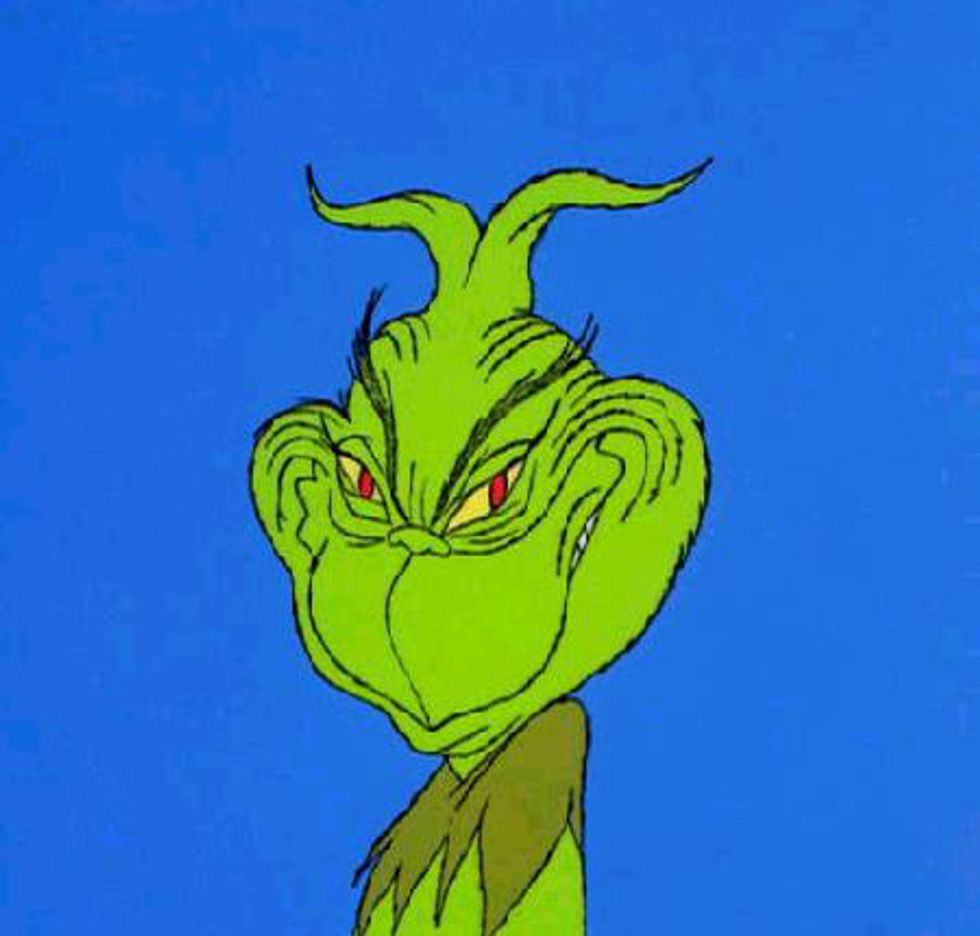 Christmas time can be one of the most joyful and exciting times of the year. We daydream of the cozy nights cuddled up to a loved one watching Christmas movies, spending quality time with family, and of course, receiving extra cash us college students need. Within the most wonderful time of year comes a most unpleasant and stressful time. Also known as finals week. (Insert dramatic music here.) A full week of cramming, crying, crashing, and contemplating an easier major. In that week, the joy of Christmas comes to a halt and for the next 168 hours you slowly turn into the Grinch.Your heart becomes an empty hole, your brain gets full of spiders, and you get garlic in your soul. Not to over exaggerate but people probably wouldn't touch you with a thirty nine and a half foot pole. Turning into a three-decker sauerkraut and toadstool sandwich can be something like: