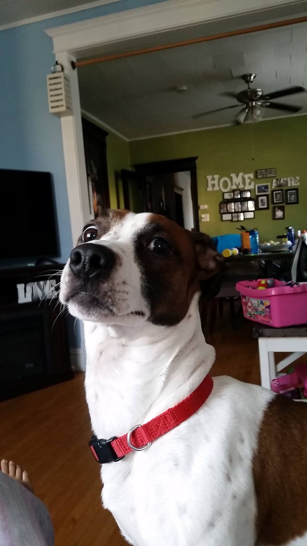 This is the youngest, Jack (named after Captain Jack Harkness from the TV Show Doctor Who). He's the goofiest dog I've ever met-- he sleeps in awkward positions and can't howl for his life. My family also call him "a typical dog" since he loves to go on long walks and play fetch. As far as breeds, he's a chihuahua and beagle mix.