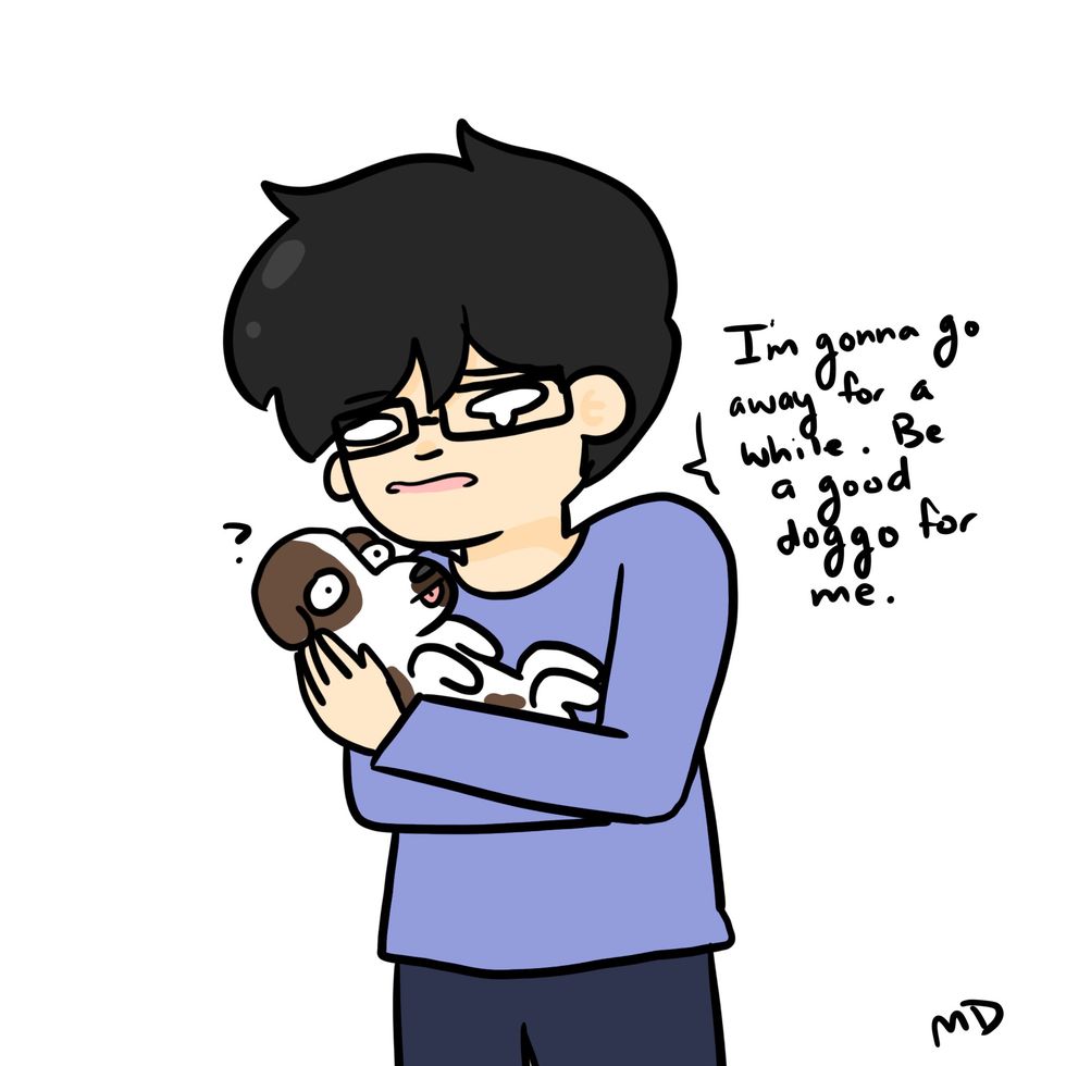 This stage happens when you're about to leave your dog(s). You feel like you have to provide a bit more attention and love towards them before you head off to college. You kinda know that you're gonna miss them, but you also feel like it's not going to be that bad.