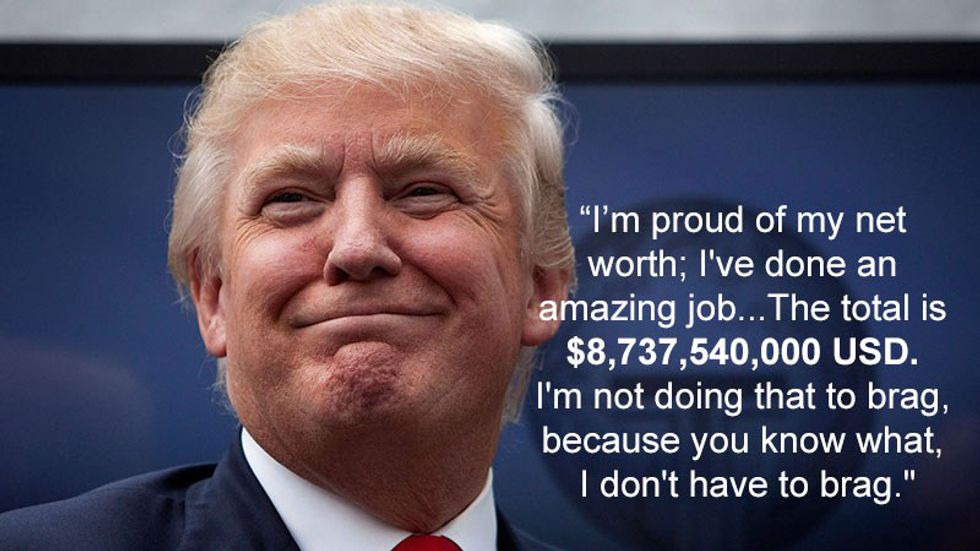 In case you were unaware, Trump is a very rich man. It's not like he doesn't remind us of that with every other word he speaks.