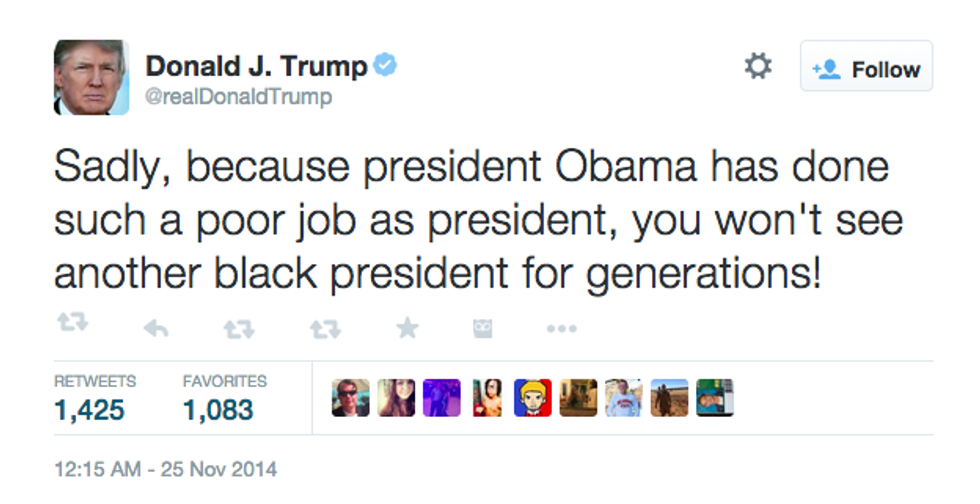 "Sadly, because president Obama has done such a poor job as president, you won't see another black president for generations!"