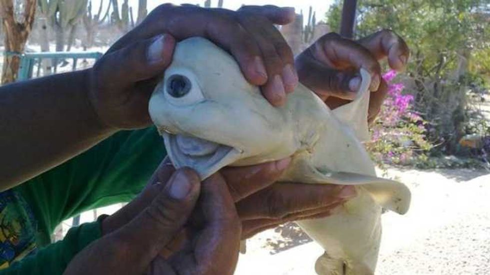This Mike Wazowski-looking fella is only a fetus, which was cut out from a pregnant dusky shark. Although other Cyclops Sharks have been found, research indicates that they donāt survive very long due to their one eye deficit. Although this shark doesnāt pose much of a threat to humans, I would not want to see it swimming towards me in the ocean.