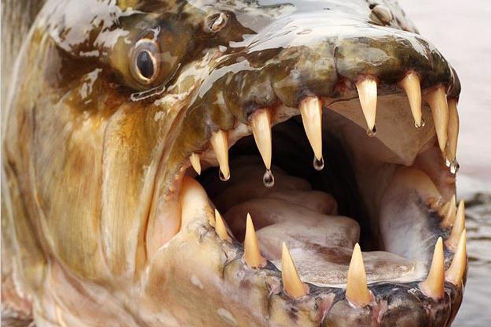 The Goliath Tigerfish inhabits rivers in the Congo and is distinctive due to its massive teeth. They have been known to attack humans and some have even gone as far as to call it the āgreatest freshwater game fish in the worldā.