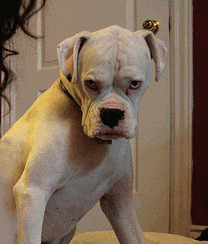 Fun fact: soon after they are born, the majority of a Boxers' tail is cut off. For this reason, when Boxers wag their "tail," they whip their ENTIRE BODY. It is amazing. And so happy.