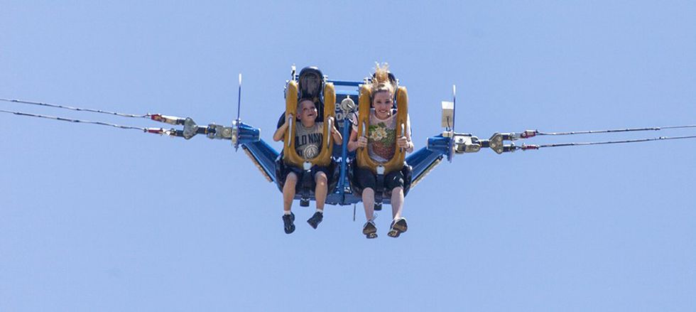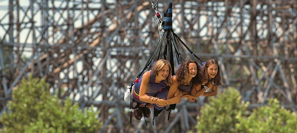 Slingshot is a two-person attraction where you and a friend will get launched 360 feet in the air. This attraction offers slight moments of weightlessness as you bounce up and down until it comes to a rest. (Slingshot also has an additional charge, but hey, it's worth it!)