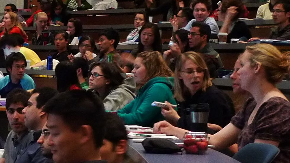Surprise! College students learn in class, and it's not that uncommon. We take notes, pay attention, and pass our exams with flying colors! JK, we're not perfect at all, but we try for our parents.