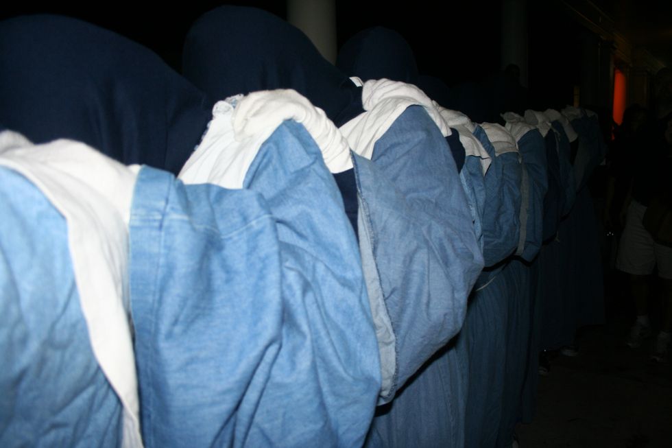 3. What secret societies? There are two secret societies on campus, Chi and Princeps. Chi holds another big tradition at Longwood: Chi walks. The date and place of these walks are unknown until the day of, but they're always held at midnight. The members of Chi wear long, blue robes with hoods and walk in a single file line with their heads down while singing their anthem. No one really knows much about these societies (unless they're a member), but everyone wants to find a Chi dropping and receive a paper/wooden seven from Princeps.