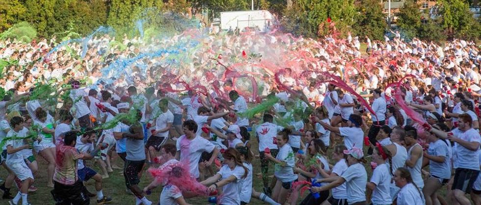 9. Finger painting is child's play. Lancers take painting to the extreme every year at the Oktoberfest. Students who graduate in even years are red, odd years are green, and transfers are blue. We stand with baited breath on the make shift battle field and await the countdown. The team that can cover President Revely (yes, the dean of our University does participate) in the most paint wins the color wars for that year. Who needs finger painting when we have color wars?
