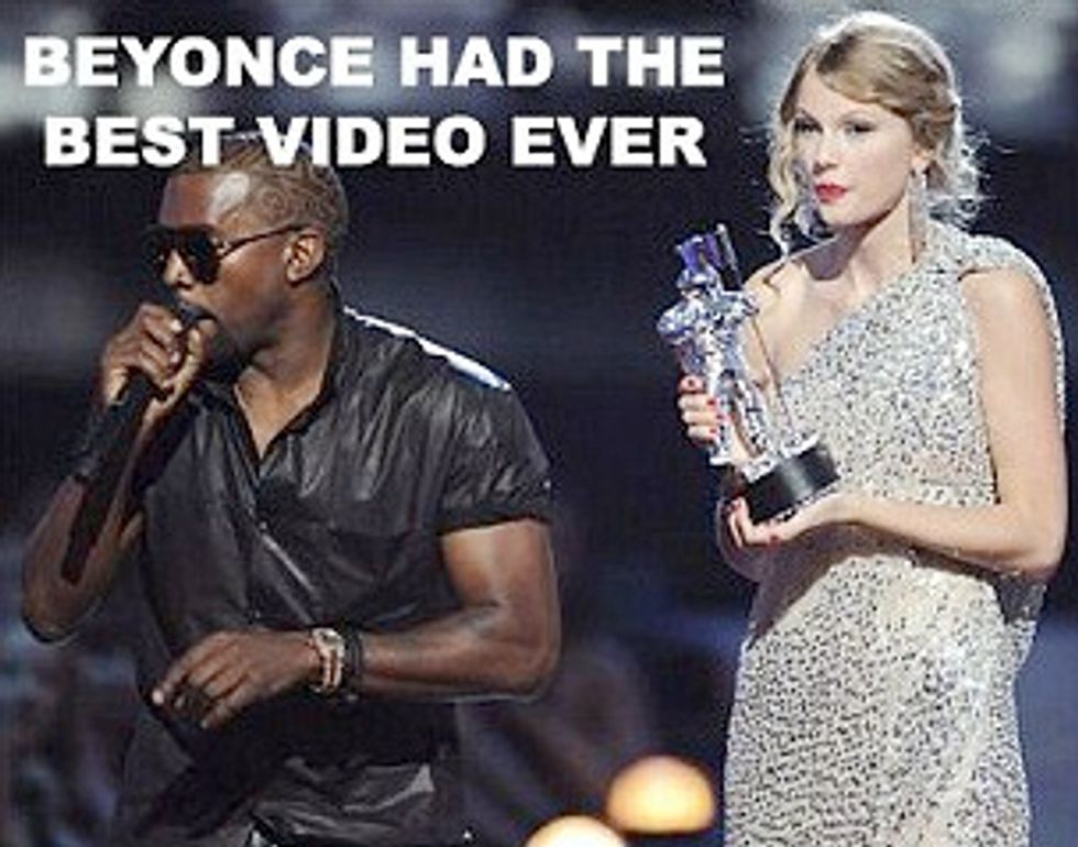 But then on the night of the VMAs, Kanye did one of the stupidest things ever and disputed the winner of a meaningless award at a meaningless awards show. And that winner just so happened to be the new virgin princess of American pop music: Taylor Swift.
