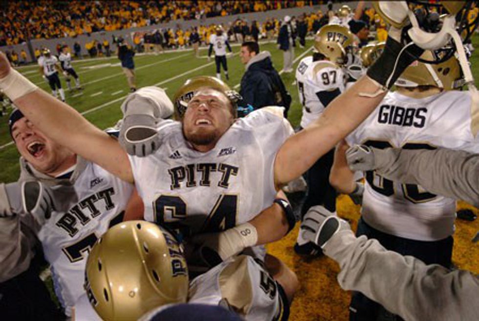 On the 100th edition of the Backyard Brawl on December 1, 2007, Pitt upset WVU AT West Virginia, knocking them out of the BCS National Championship Game. That must’ve stung. "In the Backyard Brawl, anything can happen, baby."
