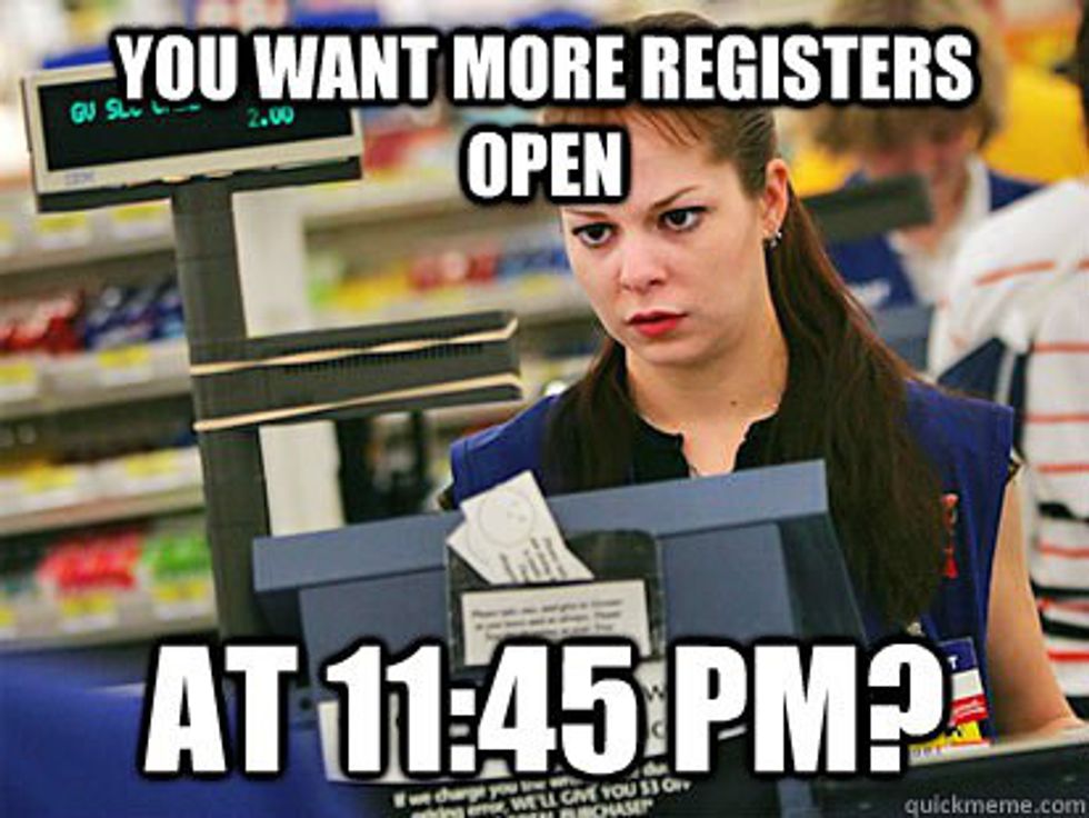 2. We Don't Control The Number Of Registers, Cashiers, Or When The Register Closes!