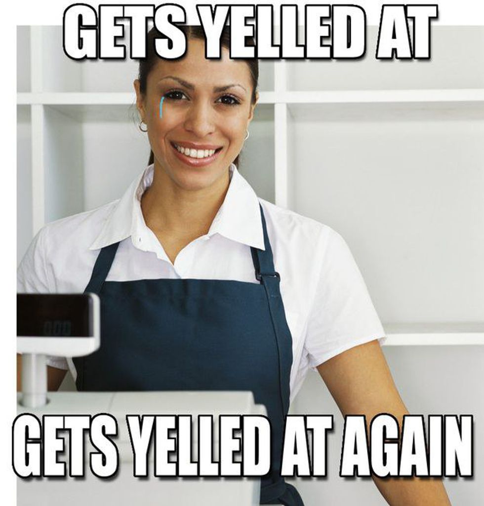We get yelled at almost constantly. We have lives outside of work. We have emotions because we are human. We are sorry sometimes we aren't happy and sometimes it shows. We get stressed out and emotional just like everyone else. And it is way too hard to smile all the time.