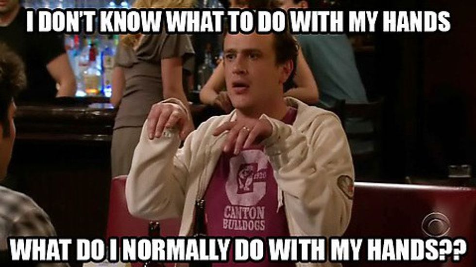 Do I pretend I have friends to text? Do I look away? Do I make eye contact? For how long? Smile? How do I walk again?