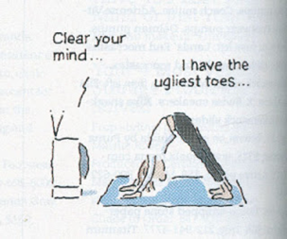 2. "Clear your mind," she says. But do my feet stink? Have they always looked this weird?