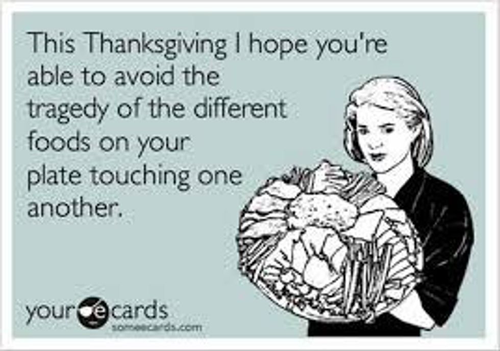 If you are one of those that cannot have your food touching on your plate, I feel sorry for you on this day of eating. There is absolutely no way to avoid food touching on Thanksgiving. Unless you want to be judged and have two plates, it’s inevitable. If you don’t care if it touches, you are golden. You can pile everything on top of each other. Let’s just hope Gram bought the extra durable plates.