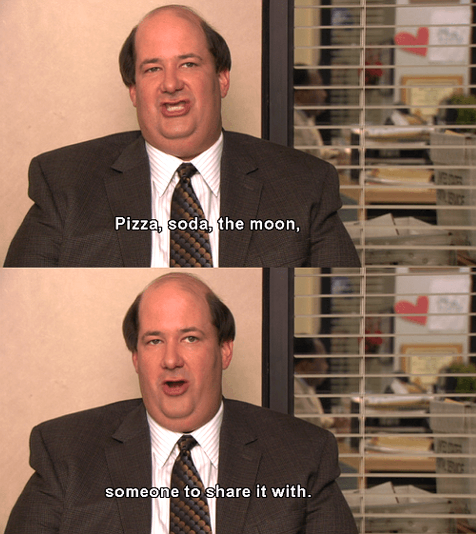 I have the pizza, soda and moon parts down. But much like Kevin, I'm living that single life-- maybe one day Kevin and I will find our soulmates to share these wonderful things with.