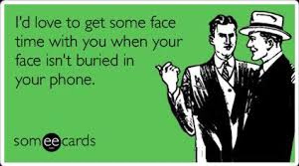 A door that (I can only imagine) weighs hundreds of pounds opening six inches in front of your face doesn't even get your attention?! Once I finally got past her I was still so blown away by what I had just experienced. Questioning her sanity and what may have happened if someone else so glued to their phone as she was had swung that door open into her. I started walking to my car and I caught myself pulling out my phone again. I realized how pitiful (and dangerous) our addiction to technology has become. I made a vow to release (or at least loosen) my chains to my cell phone. We all know we are too dependent on our technology. We all also know that Facebook is addictive (I mean that's probably what brought you here, amiright?!), Twitter is like a good episode of a raunchy reality show, and it's a lot harder to cook dinner without Pinterest. So maybe we don't want to forever cast off our phones, but I don't think any of us want to get hit in the face by a door either. Here's some steps get to that happy medium:
