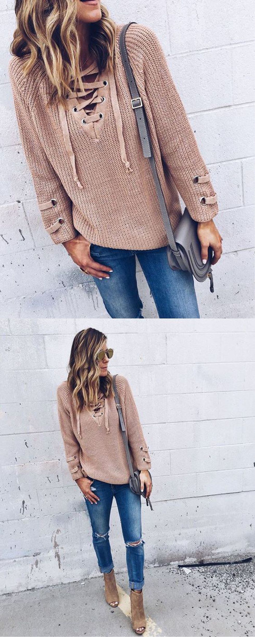 Lace up sweater have become one of the more popular items this fall and winter seasons.