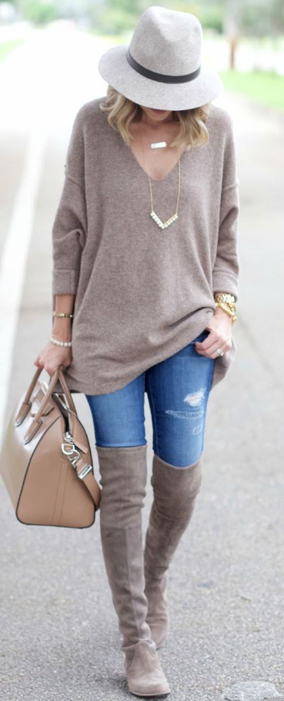 Over the knee boots are great to wear with jeans, leggings, or even with a sweater dress.