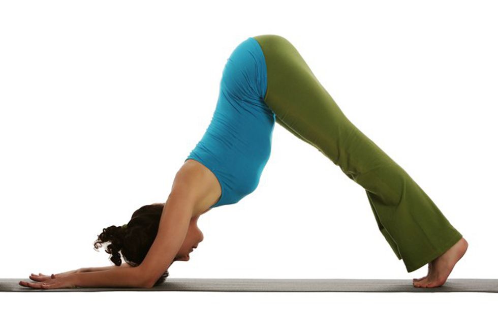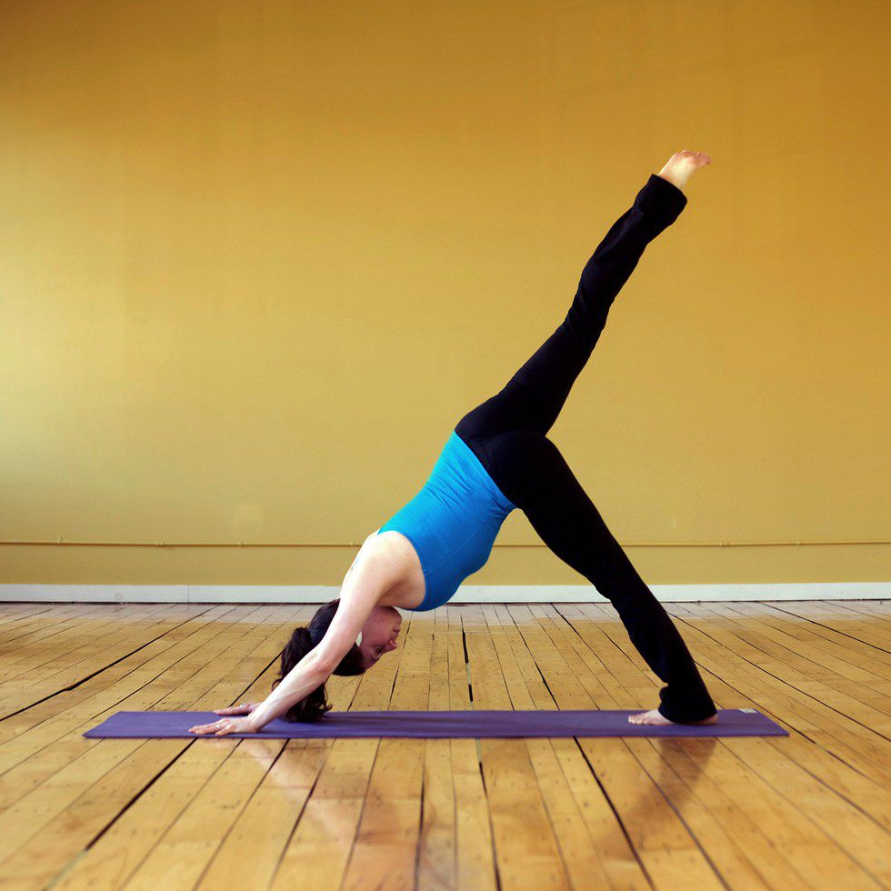 4) Tri Pada Adho Mukha Svanasana or Three Legged Downward-Facing dog