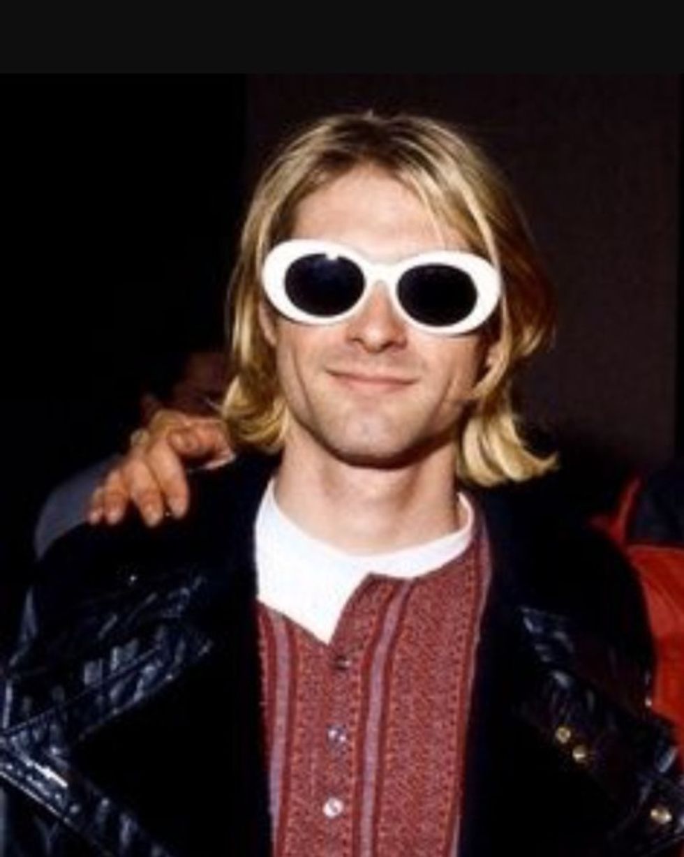 The iconic look of late Nirvana singer Kurt Cobain included his stylish pair of sunglasses.They came in various colors, but the white pair were Cobain's signature look in the early '90s when Nirvana was at the top of the alternative music genre. This famous pair of white sunglasses is found at retail stores like PacSun and Urban Outfitters. Perfect to wear for the bright sunny days ahead.