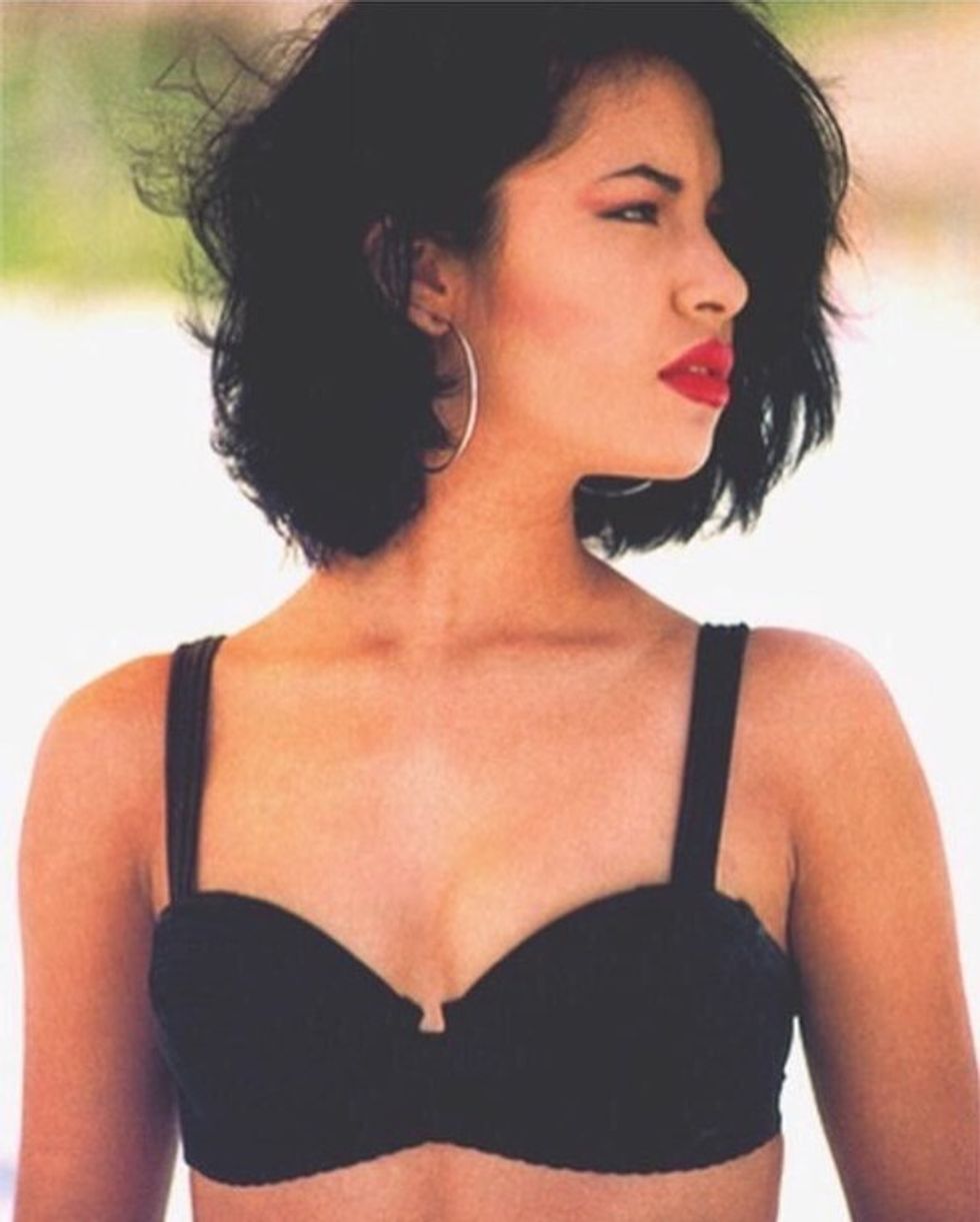 A must-have fashion accessory, the giant hoop earrings. Worn here by the late iconic Mexican-American Singer, Selena. These giants hoops can be bought ranging in various colors but most popularly sold in gold and silver. The hoop earrings are a simple piece of jewelry and are reasonably priced. Celebrities like Chrissy Teigen and Khloe Kardashian can be seen wearing giant hoop earrings today. It's an earring that creates a big statement and can be worn with any outfit.