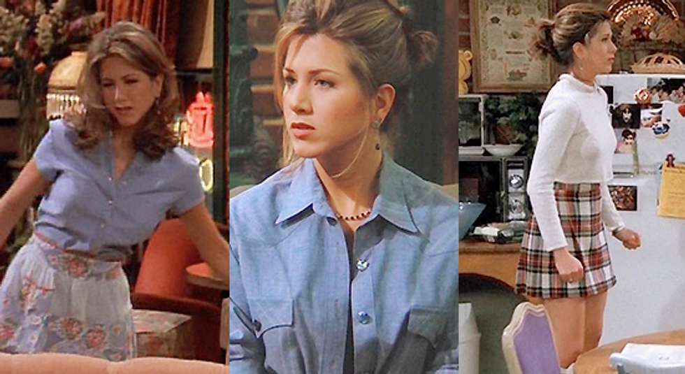 I never watched "Friends" regularly as a kid; I didn't get the humor. I remember catching snippets of it at my cousin's and friend's houses. While I wanted Phoebe's blonde princess hair, it was Rachel's fashion and infamous haircut that captivated me. The '90s are back, kiddos. Well, maybe not tank tops over baby t-shirts (please, dear God, no), but plaid skirts? Denim shirts? Semi-unironic overall shorts? Please, hand them over.