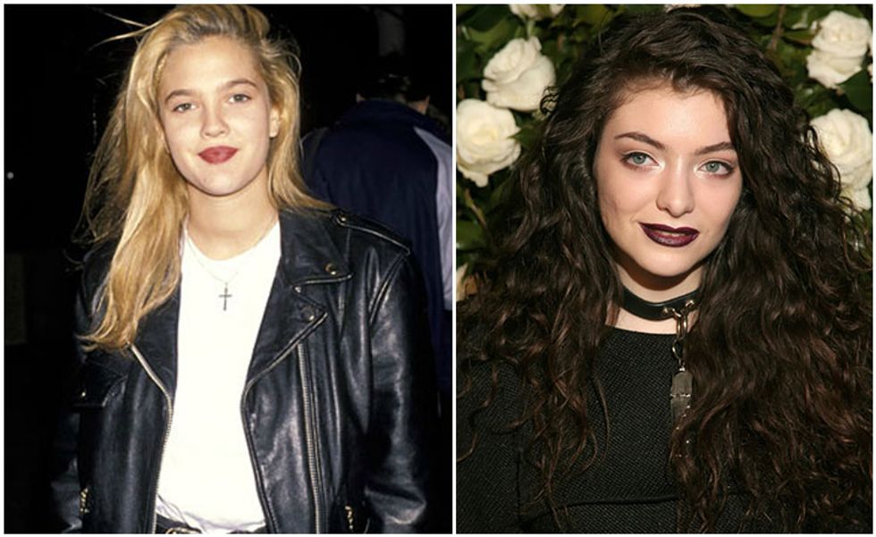 In the early 2000s we might have called this look "emo" but in the '90s, they called it grunge, and that's what we're doing again today. The '90s were all about leather jackets, dark lipstick and dirty hair. Walk into any commercial store and you'll be able to find an attempt at bringing grunge back. Even more, the grunge look has crossed generational lines from older celebrities like Drew Barrymore to up and coming artists like Lorde.