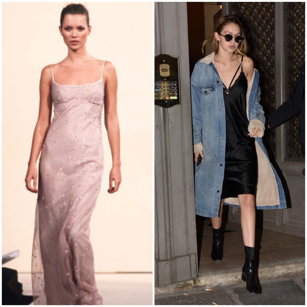 You don’t have to be Kate Moss from the ‘90s to pull of this cute, indie/boho look. Recently, these spaghetti-strapped dresses can be found worn under an oversized cardigan or jacket.