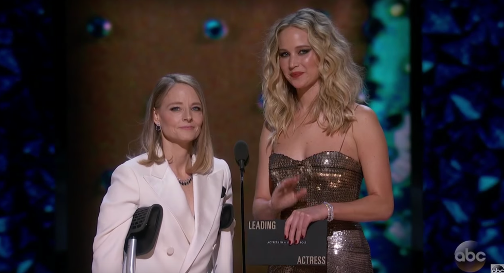 2. Jennifer Lawrence and Jodie Foster presenting the award for Best Actress
