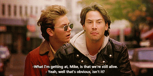 My Own Private Idaho... A young gay hustler (Mikey) who has narcolepsy befriends the rebellious mayors son. They both runaway to find Mikey's estranged mother.