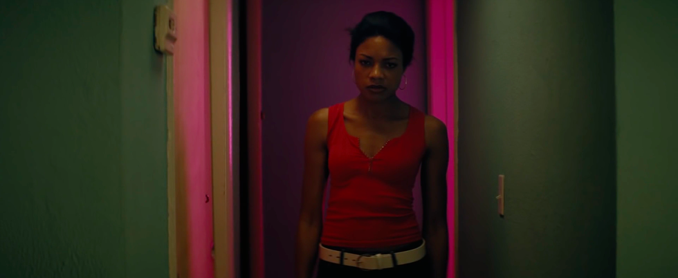 We watch Chiron struggle from a young age with his sexuality. In an early scene, when most of his friends call him "Little," a couple named Juan and Teresa (played by Mahershala Ali and Janelle Monáe) take him under their wing after he is neglected by his mom, and he asks them about homosexuality and they have a conversation about it.