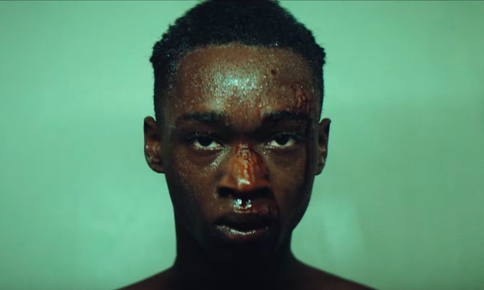 Finally, in this A24 film we watch Chiron struggle with trying to appear masculine. This is a key theme throughout, as a young kid he is forced to wrestle with a friend to prove he isn't "soft." We can see however, that Chiron appears less masculine than most of the boys he is surrounded by. When he is a teenager, also, to prove that he is "a man," he is forced to beat up one of his closest friends, Kevin, and he does show just to prove himself.