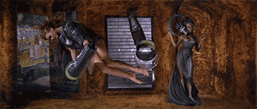 Four years before she won her first Academy Award and pissed off America by posing with an anti-aircraft gun during a visit to Vietnam, Jane Fonda starred in "Barbarella", a European sci-fi "film" with a plot that centers around showing as much of her skin as possible. Barbarella must save a scientist from a deadly planet while narrowly escaping man-eating dolls, overloading a machine called "The Orgasmotron", and encountering a nearly-nude angel named Pygar. It's impossible to explain and will most likely leave you confused, but it's worth watching.