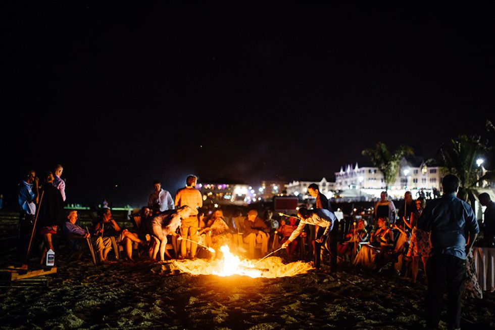 At the end of a lazy beach day, friends and family return to the beach for a bonfire.