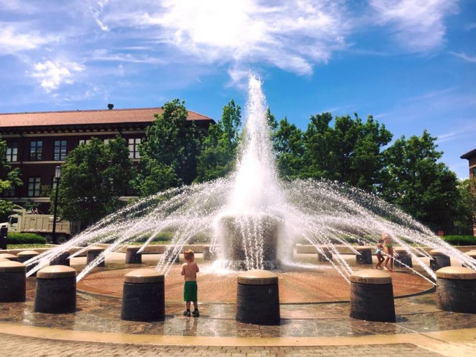 F for Fountain Runs, a tradition and fun activity to do during hot days to cool off.