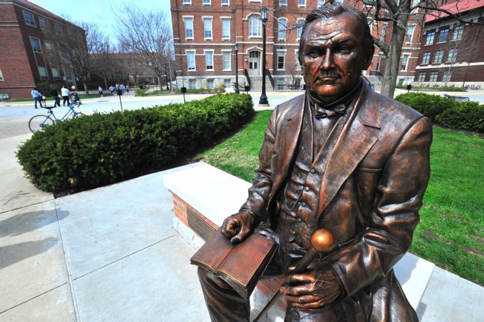 L for luck. Need some luck? Rub the nose of Abraham Lincoln's bust in the Union. Need to graduate in four years? DON'T walk under the bell tower.