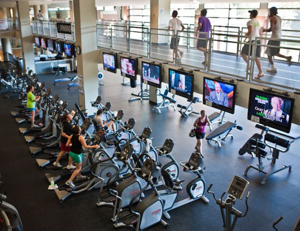 The campus center is the place to get in a quick workout and mastering the rock climbing wall.