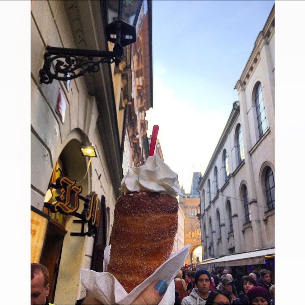 This is a Trdelnik, a street food found all over the city. People think they're especially from Prague, but there's actually no relation to the culture what so ever. They just popped up out of nowhere for the tourists. Doesn't make it any less yummmmyyyyyyy. I got Nutella in mine, obviously. We're convinced turtlenecks were named after them, thoughts?