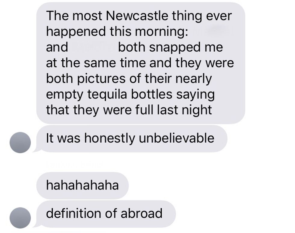 Well, this is my last week here in Newcastle, England. And if I have learned anything, I've learned that the only 'typical' text sent in the group chat with my friends is "are u alive?"
