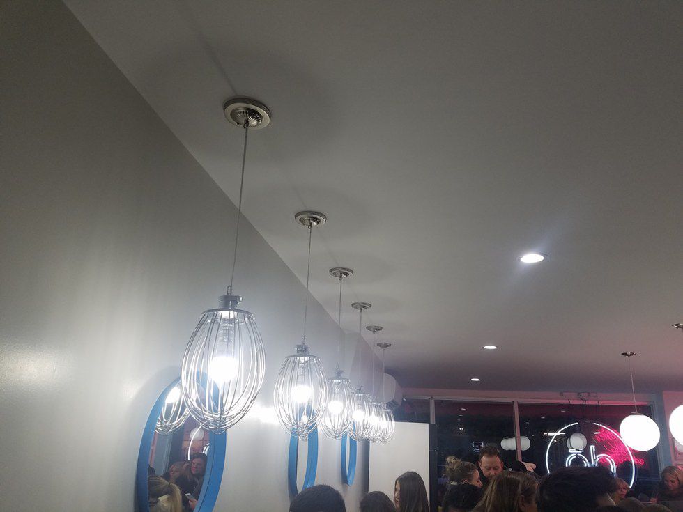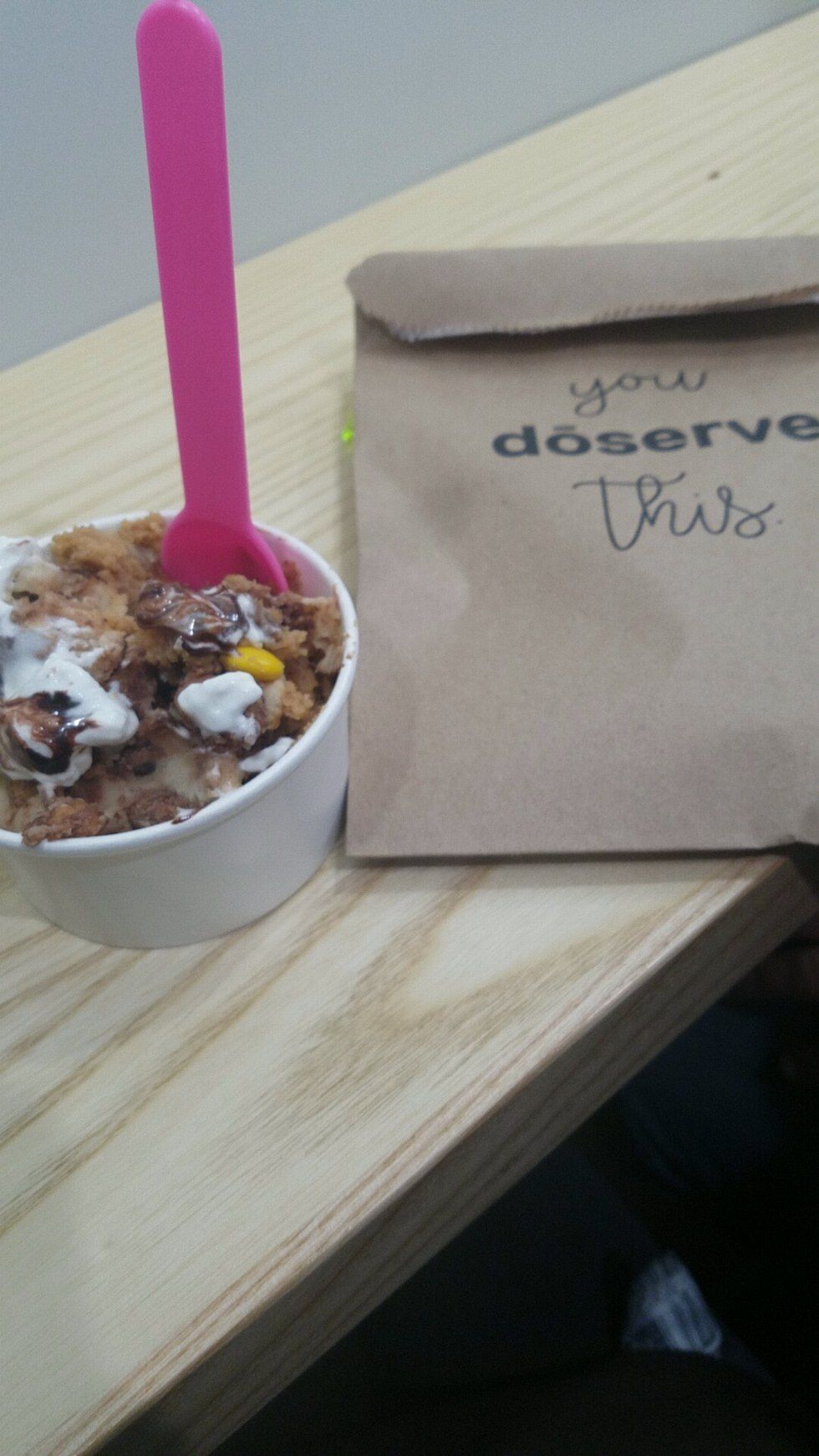 The decor was just as sweet. Lighting fixtures made to look like whisks and brightly colored pink chairs made it into an ice cream shop that wasn't actually an ice cream shop. You're allowed to try three flavors and the options are endless. Cookie dough sundaes, ice cream sandwiches, milkshakes, cakes, brownies, AND they're cookies were so soft. Equal to heaven in your mouth.