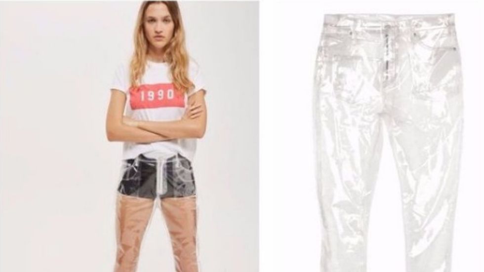 How about spending $100 on these CLEAR I repeat CLEAR jeans? I think not. If I have to wear shorts or pants under my pants that just isn't right. Why would I waste all this money on these ugly pants if I could just go to Wal-Mart and buy Saran Wrap for so much cheaper?
