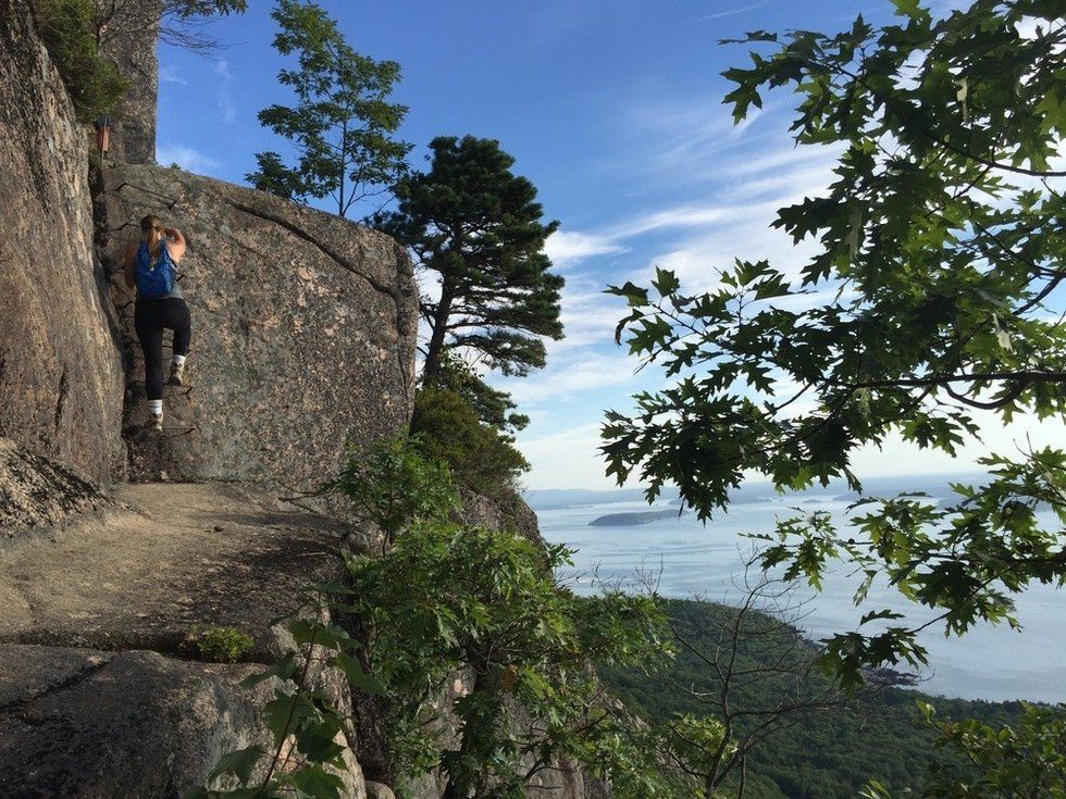The Beehive is one of Acadia's most difficult trails. It gets its name from the steep ascent wrapped around a hive-shaped mountain. Beehive is not for the faint of heart. The trial includes iron rungs and steep drop offs. But brave souls are rewarded for their efforts with stunning views over the island. A great trial run before the Precipice.