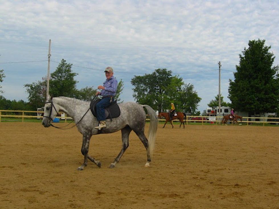 I was basically a working student for Bobby, a barely 5 foot tall 69 year-old who had retained all the old horseman's tricks, along with an impressively colorful vocabulary and equally impressive cigarette habit. For 2 ½ years I was riding anywhere from 45 minutes – 3 hours, 5-6 days a week during the summer, and only slightly less during the school year. A majority of this was with Deedee (in the picture above with Bobby at our first show in the summer of '08), because after seeing me ride for the first time I got the following evaluation: “Well… you need a lot of work. I mean, a lot. But if you’re willing to put the time in, maybe we can get you riding.”**