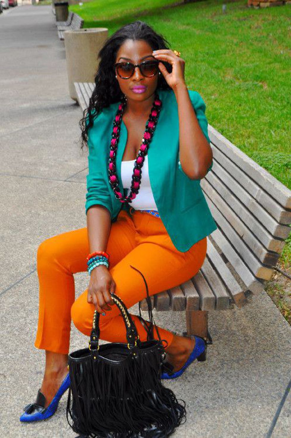 Do not be afraid of colors. Colors are vibrant and are one of the key components to bringing out your personality and even culture at times. I personally love colors with everything I wear because well...that's just me! Now, not every woman likes color and that is OK! You just need to make sure that when you rock colors you do it the right way. I'll give you an example: If for some reason you are wearing a black top, black bottoms, black shoes...black everything ladies, please please PLEASE wear a statement piece necklace or carry a nice purse that POPS. Believe it or not, purses, clutches, etc. are all accessories, so don't be fooled! Honestly, accessories can bring an outfit from -5 to 200 real quick! You can quote me on that one.