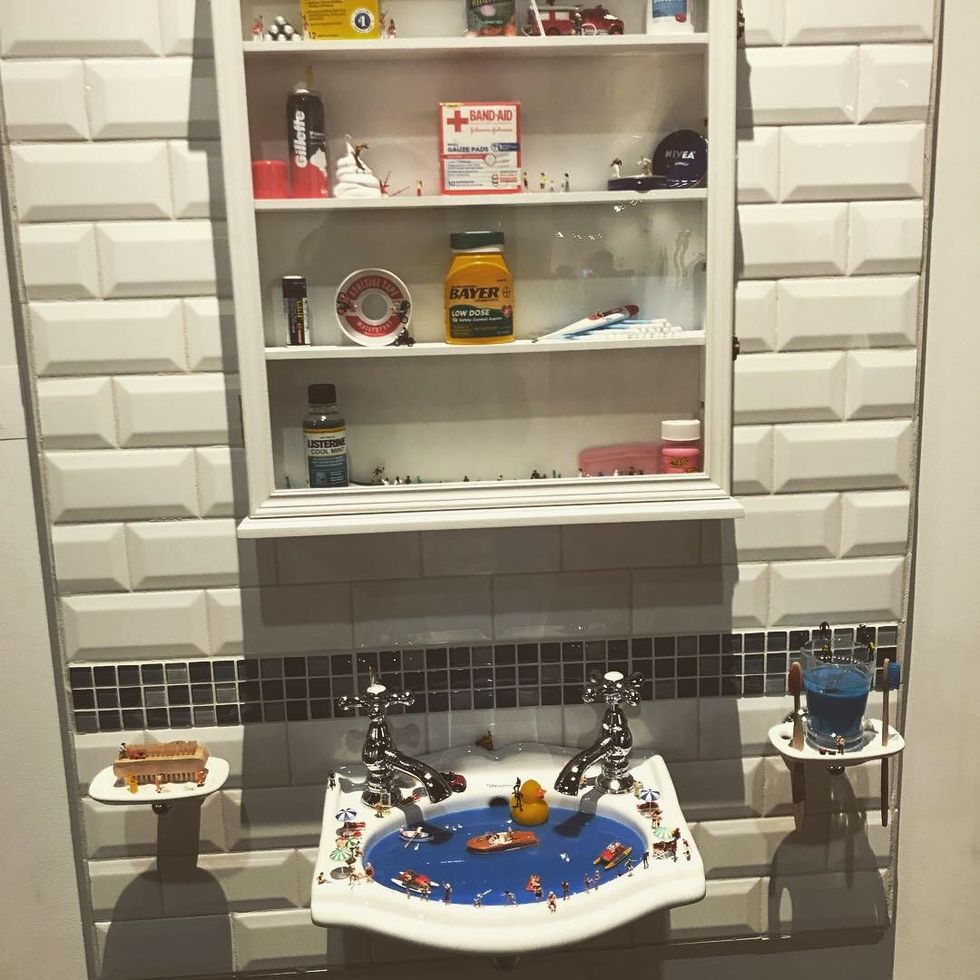 Secondly, these finished pieces are from spontaneous ideas. Who looks at their bathroom and decides, "oh, I should really make a mini scene here", as pictured below? Pursuing these ideas require time and draft pieces—two things art students like myself really struggle with in terms of money and time management.