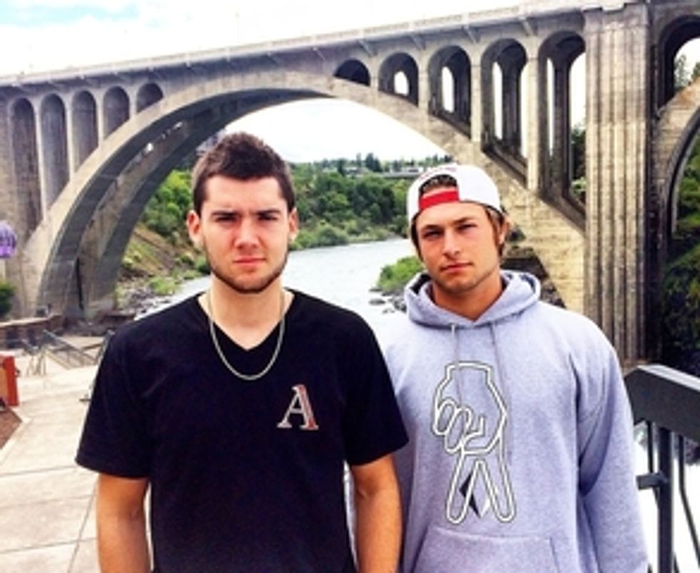 Aces Clothing Company creator Nick Price (left) and fraternity brother, Austin (right).