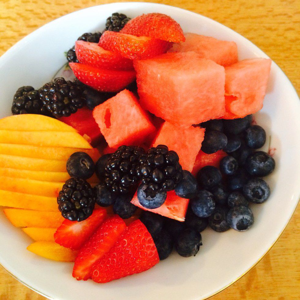 Other in-season fruits to add color to your summer hydration mixture include tomatoes, nectarines, blackberries, grapes, cherries, plums, bell pepper, and cucumbers.