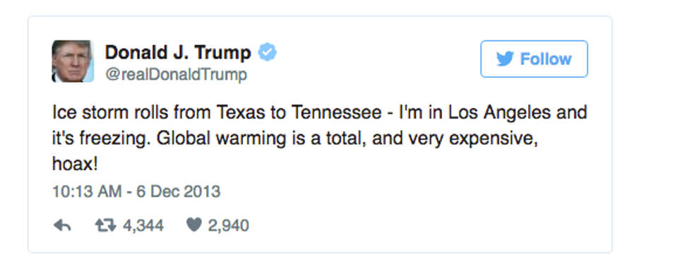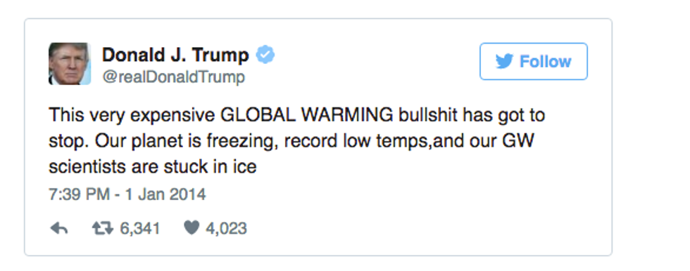 Ah, so…what’s the word...incorrect. I don’t know what parallel universe you are living in, Mr. Trump, but we’ve got record high temperatures on record. Let me just fix that typo for you: Record high temps. Nice word-play, though!