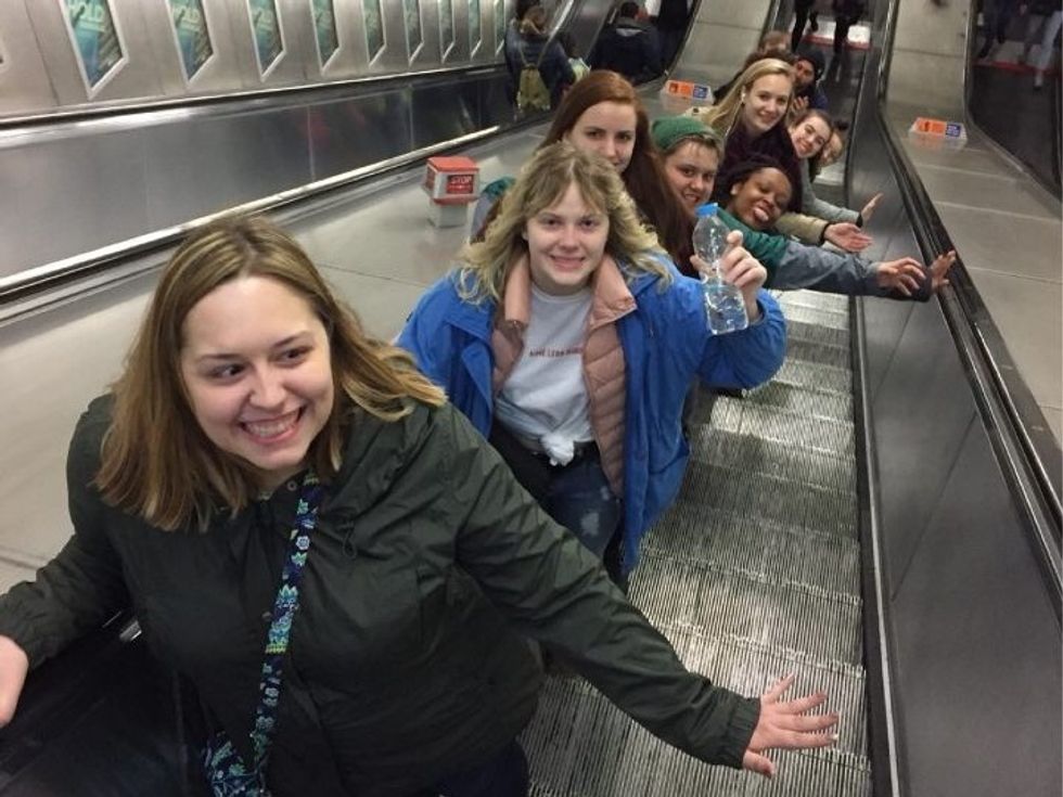 Riding the escalator in one of the London Underground stations on our last day in England.